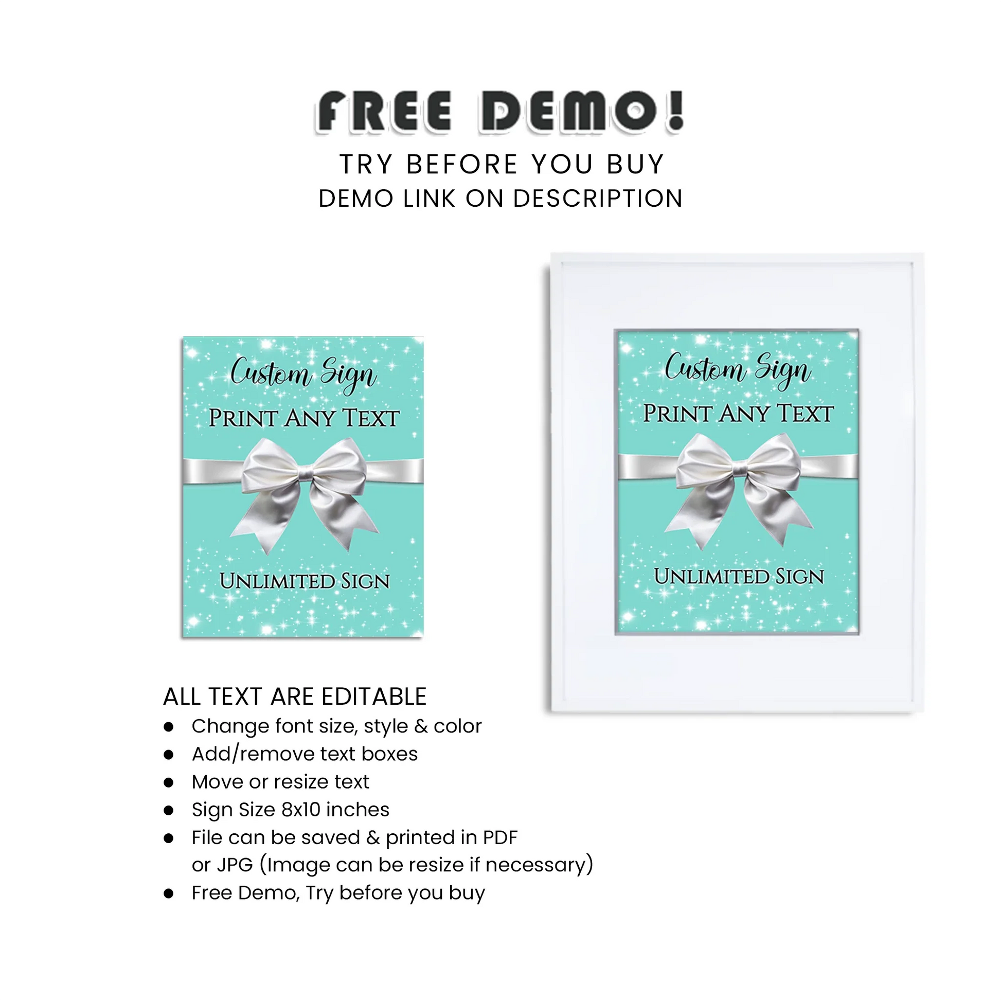 This Custom Sign is fully editable and available for immediate download. Our user-friendly online editor allows for easy customization without any software or font downloads.