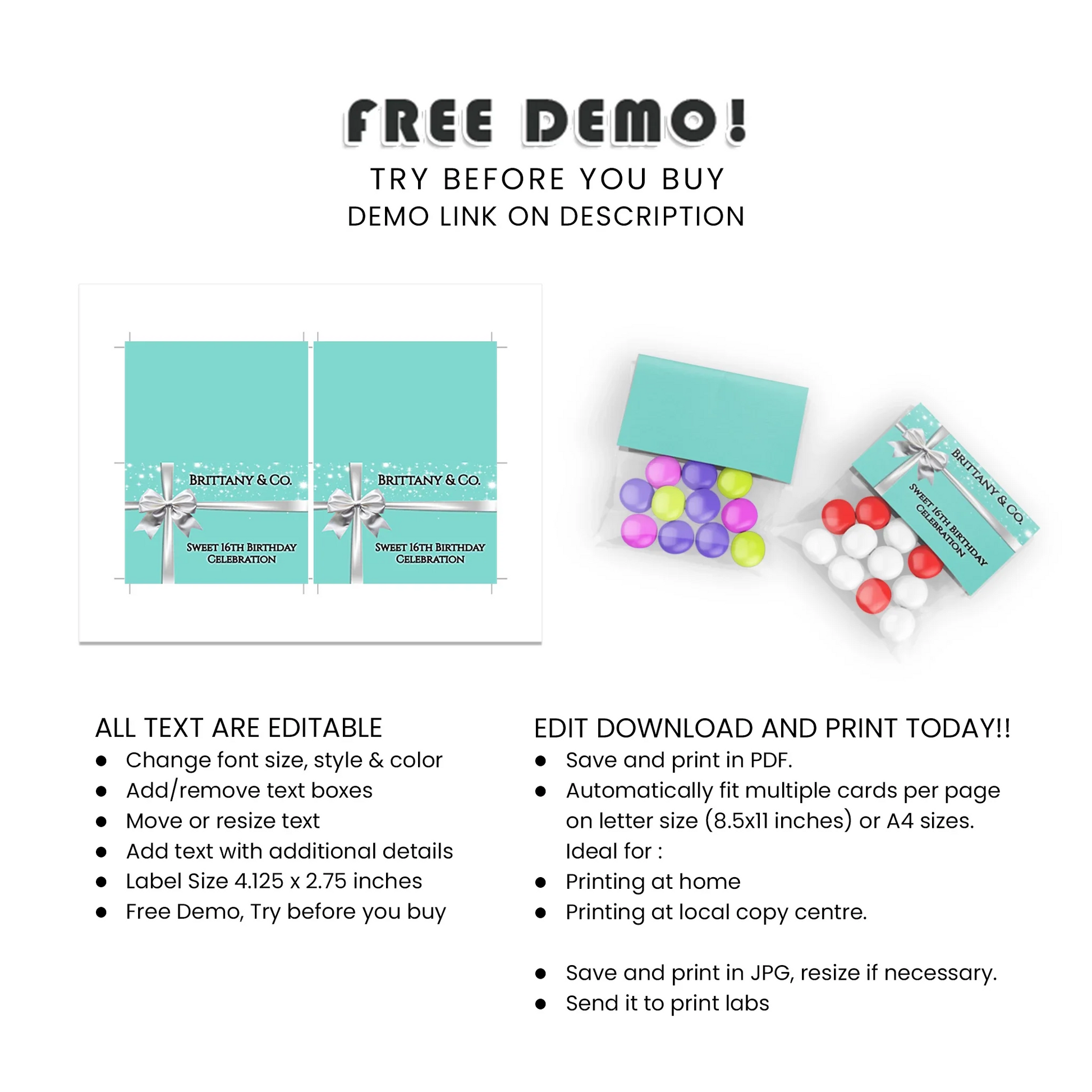 Tiffany & CO Inspired Personalized Treat Bag Topper Label Custom DIY