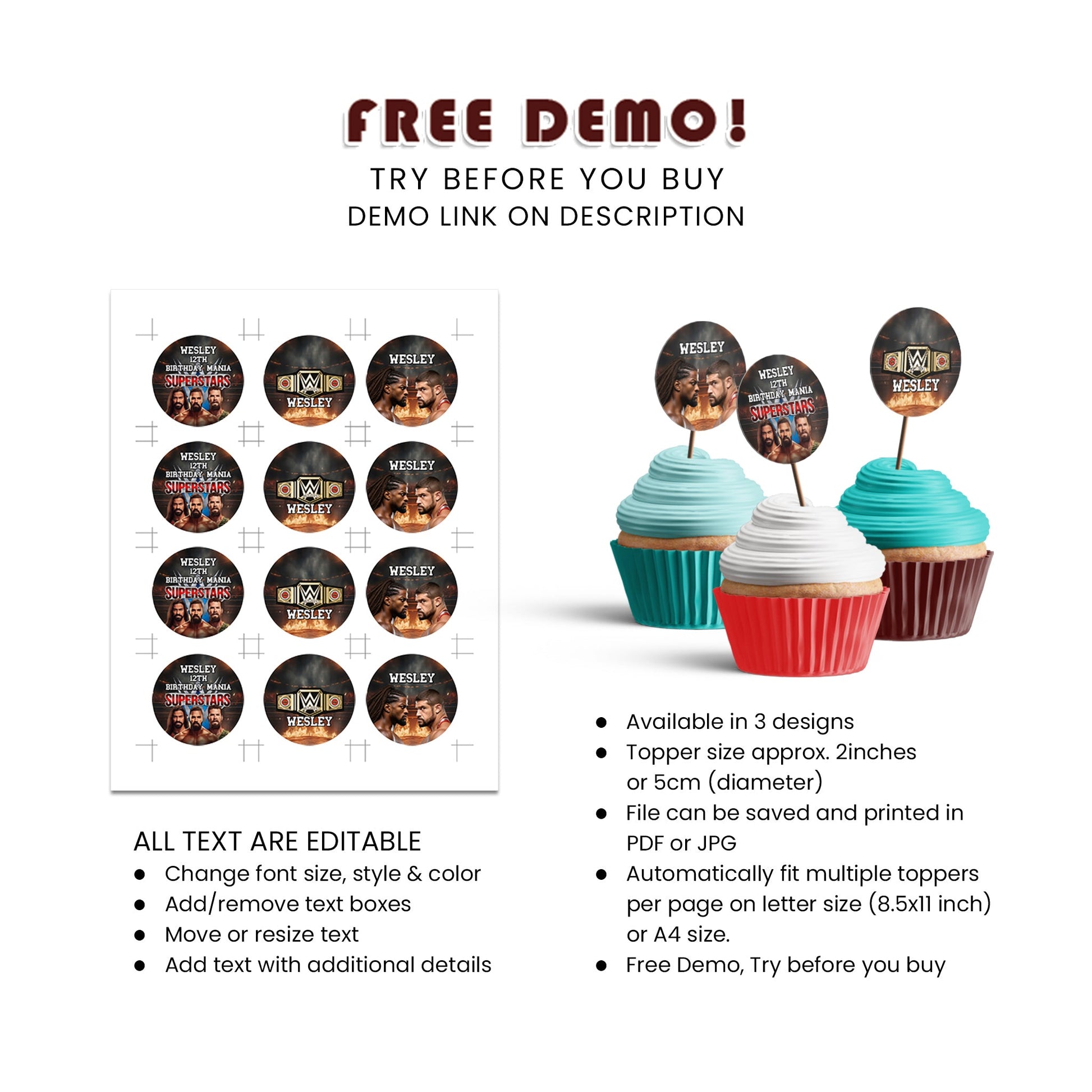 WWE WrestleMania Personalized Cupcakes Toppers - Make Your Cupcakes Stand Out