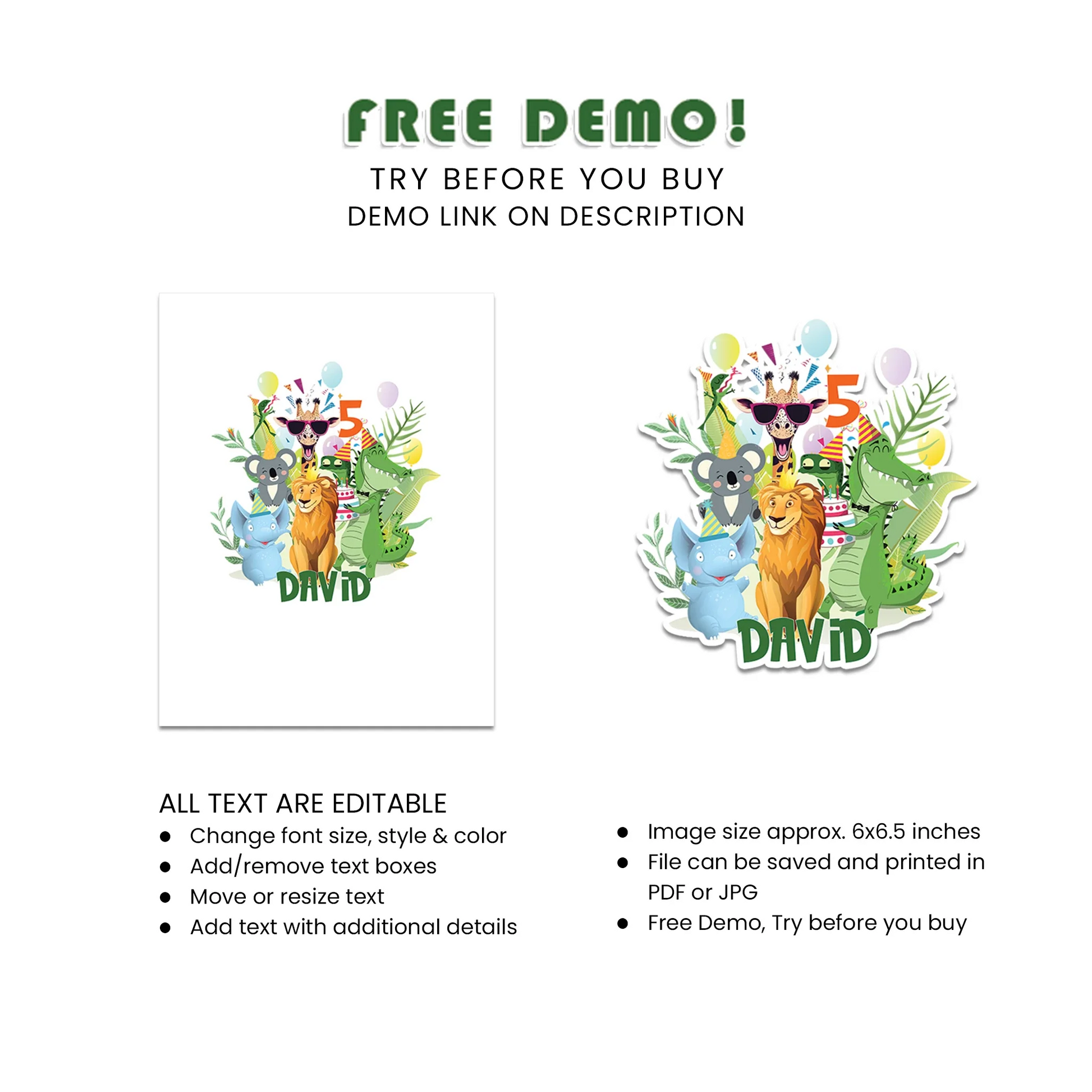 This Birthday Cake Topper is fully editable and available for immediate download. Our user-friendly online editor allows for easy customization without any software or font downloads.
